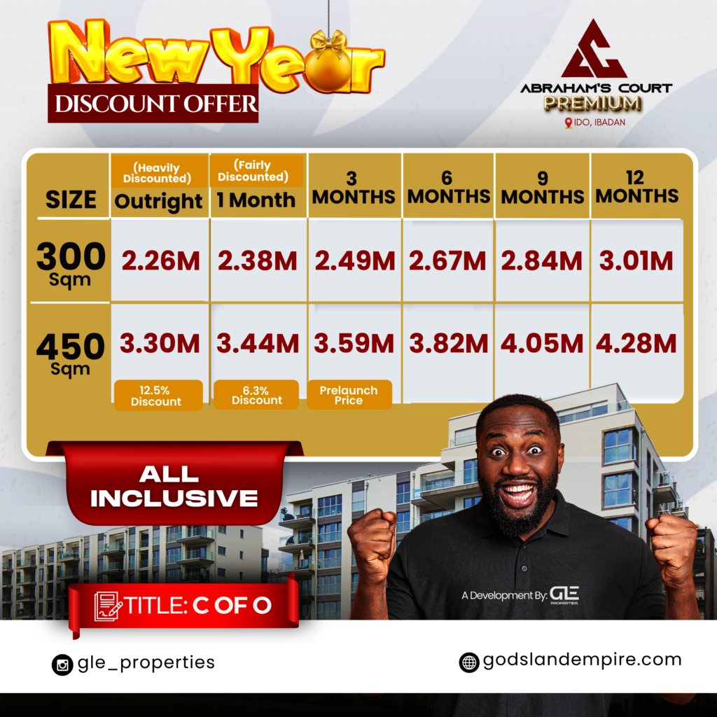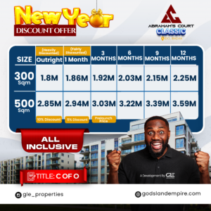 The Developer of Abraham’s court is Godland Properties Empire Limited (GLE Properties)